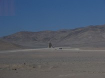40.deň                   Ráno v púšti Atacama nemôže byť iné ako horúce a suché, v klimatizovanej came je však velmi príjemne. Púšť ja absolútne holá, vykydnuté kopy kamenia z tatroviek popri ceste pôsobia prirodzene, občasné budovy a komíny povrchových baní sú nadobro zaprášené a splývajú s okolím. Magická ruka Atacamy vynaliezavého ArBoPeČi2006architekta oživuje túto pustinu, jedenásť metrová betónová socha je skvostná, hoci len z okna ubiehajúceho autobusu. Míňame Antofagastu a akoby tou istou krajinou prichádzame s meškaním do Calamy, kde už nestihnem najväčšiu otvorenú baňu na meď na svete – Chuckicamata. Nepomáha presvedčovanie, prosby, klamstvá - predpis je predpis. Calama nemá čo viac ponúknuť, čas si krátim márnym hladaním jediného kníhkupectva, zrejme tu pasáci s kamarátkami moc nečítajú. Večer mi ide autobus do Arici. Toto je menej zaujímavá časť cesty krajinou, ktorú už poznám, je to ale najrýchlejší dopravný koridor na sever. Cez Saltu a Villazón by som musel prechádzať cez Andy, kde býva v San Pedre aj tak vypredané, cez Mendozu je to zas pomalé a Aconcaguu som už určite vidieť nechcel.